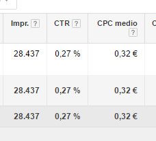 Por lo general en la red de display se necesita un gran número de impresiones para conseguir conversiones, por ejemplo mediante el envío de un formulario de contacto, y además el CTR (ratio de clics, o porcentaje de clics que se obtienen al mostrar la publicidad) suele ser muy bajo, así que no es de extrañar que se pueda situar en torno al 0,10%.