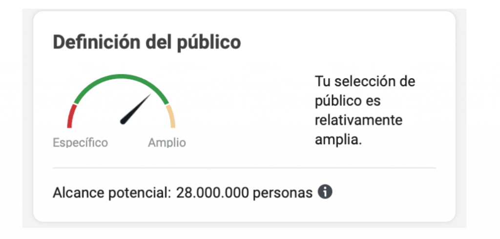 Hay que buscar públicos lo más amplios posibles sin pasarse con el presupuesto diario para darle tiempo al algoritmo de Facebook a repartir correctamente la inversión diaria del anuncio.
