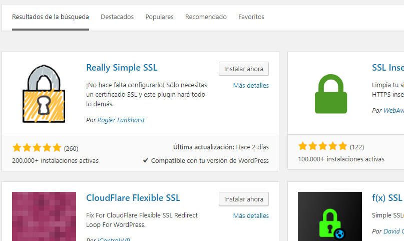 Vamos a instalar un plugin que funciona perfectamente y nos lo soluciona en un momento. Se trata de Really Simple SSL.